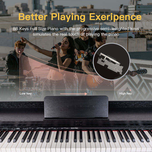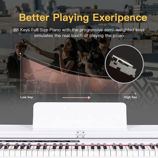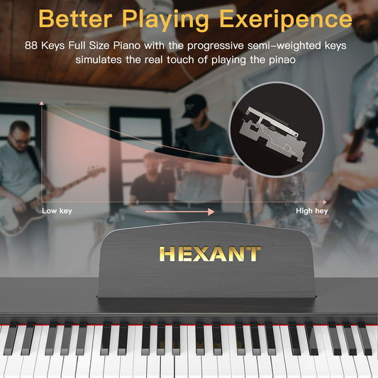 HEXANT 88 Key Digital Piano Keyboard, Semi-Weighted Electric Piano Keyboard with Multifunctional Keyboard/110 Demo Songs/900 Tones/700 Rhythms/64 Polyphony/Sustain Pedal for Adult/Beginner