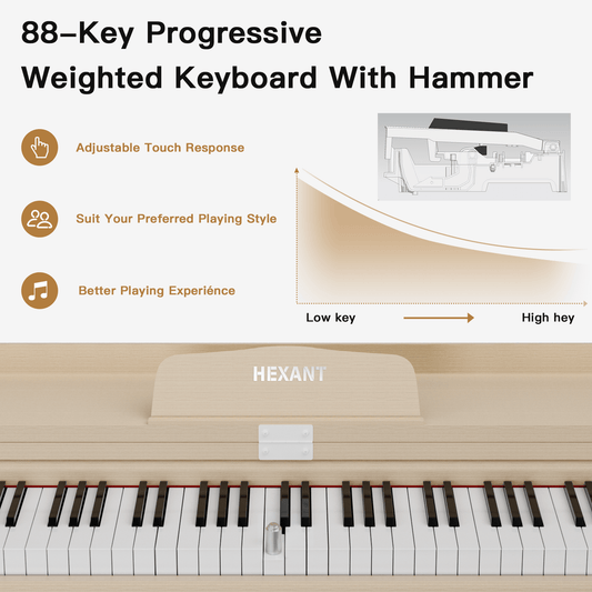 HEXANT 88- Key Hammer Weighted Digital Keyboard Piano, Wooden Electric Heavy Hammer Weighted Full Size Keyboard Piano, with 3-Pedal, MIDI Connection, Multi-Functional Keyboard and Stand